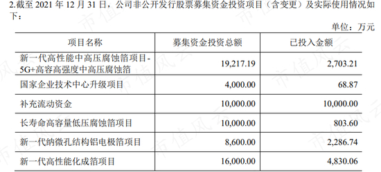 募投项目达产后,公司又在2021年11月完成了定向增发,非公开募集约6.8亿元。在增加公司腐蚀箔产能的同时,继续为雅安和石嘴山生产基地提升化成箔产能。