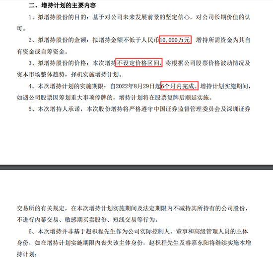 公告显示,公司的实控人赵枳程及其所控制的睿嘉(东阳)企业管理合伙企业(有限合伙)(以下简称“睿嘉东阳”)基于对公司未来发展的坚定信心,拟耗资至少1亿元增持公司股份,而且增持不设定价格区间。本次增持计划的实施期限为自2022年8月29日起6个月内完成。