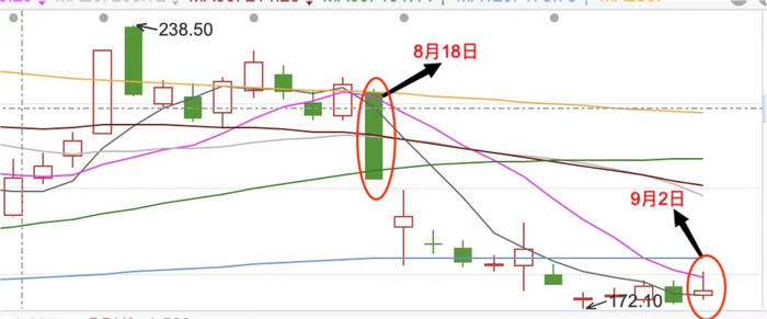 8月19日上午,长春高新股价盘中再次跌停,收盘时仍跌4.21%,并放出了48亿的罕见巨量成交。此后长春高新连续阴跌,从8月18日至9月4日,长春高新股价重挫21%,市值蒸发196亿。