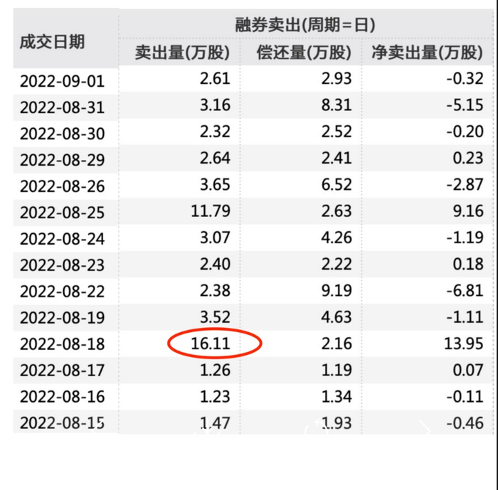 《每日经济新闻》记者发现,8月18日的融券卖出金额突然比平常放大超过10倍,平常每天1万多股,猛增到16.11万股,达到有数据可查(2013年1月至今)的第二大数值,当日的融券卖出量是前一日的12倍,按8月18日均价212.5元计算,融券卖出金额为3423万元。