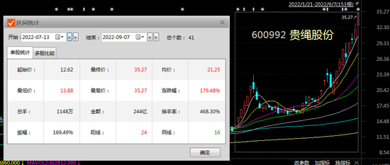 近日,曾在7月份收获6个涨停的贵绳股份,股价再度走强,并于9月7日再收涨停。自7月13日成为“习酒借壳”概念股至今,贵绳股份股价大涨近180%,创出历史新高。