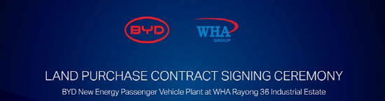 与比亚迪签署购地协议的是泰国知名工业开发商WHA集团。该集团发布的公告表示,比亚迪购买了该集团位于曼谷南部的一个名为WHA罗勇36工业区,占地面积96公顷,位于泰国东部经济走廊的战略位置,是WHA集团在泰国的第11个工业区。
