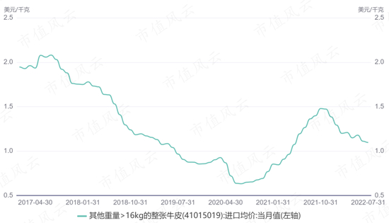 以进口的整张牛皮为例,原材料价格自2017年以来持续下滑,2021年开始回升,也就是说毛利率的提升很大部分原因是由于成本端的改善导致。