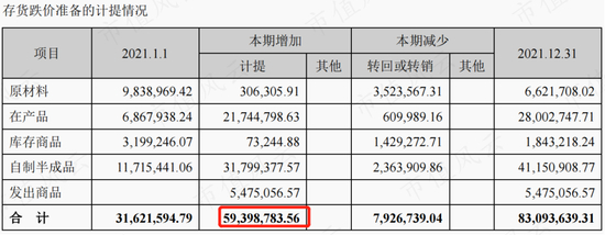 同时,2021年计提的存货跌价准备为0.59亿元,直接拖累了当期业绩表现。