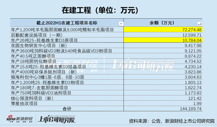 花园生物早在2018年7月30日,董事会就审议通过了有关公司全资子公司浙江花园营养科技有限公司(简称“花园营养”)拟自筹资金9.04亿元的投资项目,其主要包括年产1200吨羊毛脂胆固醇、1200吨25-羟基维生素D3粉、8000吨精制羊毛脂、750吨饲料级VD3油剂等项目。