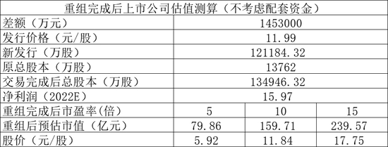 如果对重组完成后上市公司的股价及市值做个简单测算,不考虑配套资金的情况下,按照同行可比公司中国铝业(601600.SH)、天山铝业(002532.SZ)、云铝股份(000807.SZ)等公司的估值设定估算范围,假设上市公司动态市盈率在5-15倍,那么重组后预估市值在80-240亿元,对应股价5.92元/股-17.75元/股。(仅供参考,不作为投资建议)