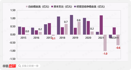 现金流方面也基本可以验证,2017年、2021年和2022年上半年受成本端压力影响,现金流转负,其余年份自由现金流均为正。