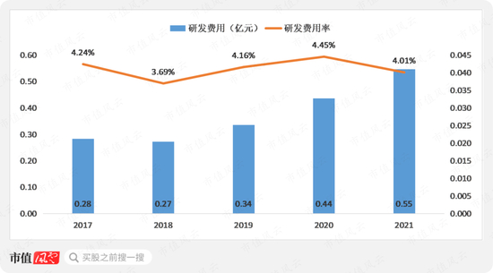 结合研发投入来看,近几年研发费用均保持提升态势,但研发费用率不高,整体表现中规中矩。