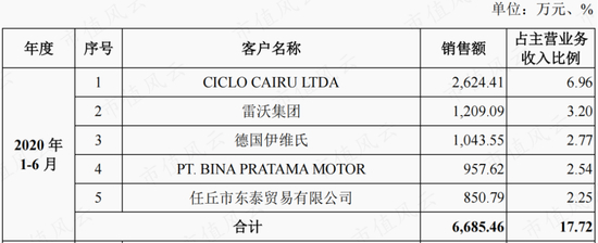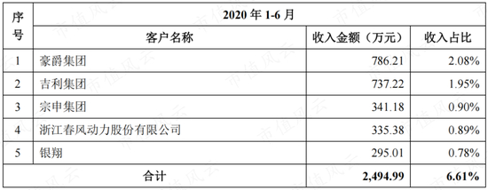 2020年上半年,汽车链系统内销模式下前五大主机配套客户如下: