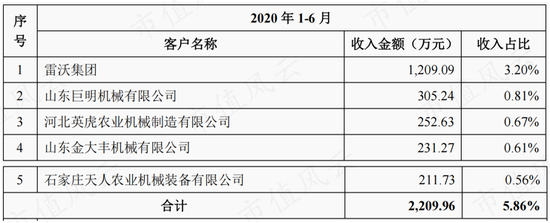 2020年上半年,农业机械链系统内销模式下前五大主机配套客户如下: