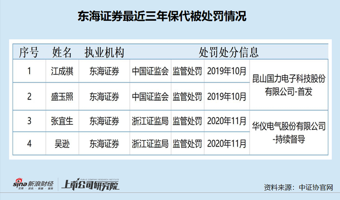 此外,东海证券保荐的多家项目存在执业质量问题。如公司保代盛玉照、江成祺在保荐国力电子科技股份有限公司IPO过程中,未勤勉尽责,对发行人股权变动、应收款项等情况的核查不充分,被证监会出具警示函。