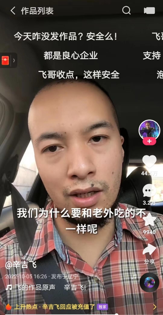 辛吉飞在10月5日的视频中,侧面评论了海天味业一事。他表示,希望广大网友明辨是非,不要被人利用,该品牌也有0添加产品。但他也认为,中国消费者不应该和外国消费者吃的不一样,我们要比外国人吃得更好;而品牌把产品踏踏实实做好,就是对消费者最大的回馈和感恩。