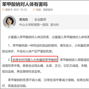 而引爆大众情绪的是添加剂的危害。以苯甲酸钠为例,苯甲酸钠属于长期服用可导致疾病和癌症的产生,过量会对肝脏造成非常严重的伤害,甚至导致癌症。