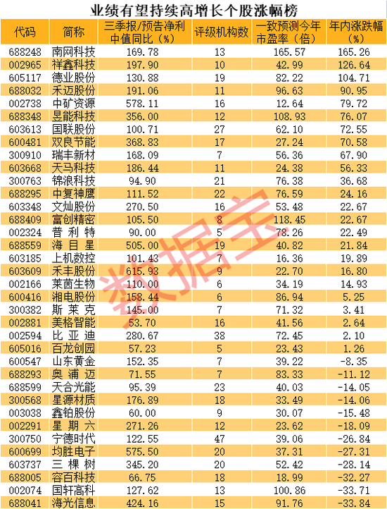 业绩持续高增长的优质股名单出炉,1800亿锂电巨头大涨,20倍超级慢牛股现身(名单)