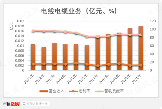 折腾了这么久,远东股份的收入仍主要来自电线电缆业务。2021年,远东股份实现营业收入208.71亿元,其中电线电缆贡献了181.14亿元,占比86.79%。