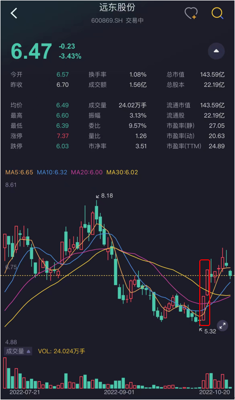 市场像是已经提前预支,在2022年10月11日-12日,A股再次失守3000点时,远东股份却迎来两个涨停。