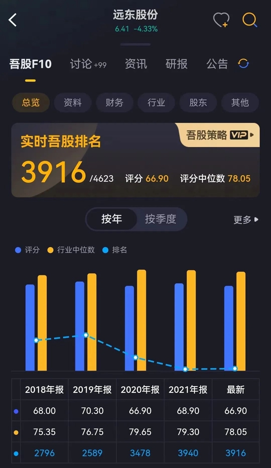咱们的“吾股大数据”是怎么说的呢?自2018年以来,远东股份的排名直线下滑,最新排名只有3916。