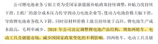 到了2020年,远东电池亏成渣渣,上市公司又默(厚颜)默(无耻)换了个说法:为减少国家新能源补贴政策调整的不利影响,主动调整了锂电池产品结构,转战两轮车、电动工具及储能市场。