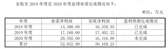 在2018-2020年业绩承诺期内,京航安未完成业绩承诺。