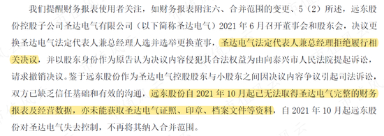 2021年10月,远东股份对子公司圣达电气失去控制。具体情况是: