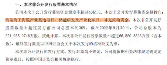2022年10月12日晚,远东股份(600869.SH)披露筹划非公开发行股票事项,计划募资40亿,拟投向资金包括高端海工海缆、储能研发等项目。