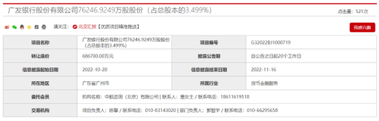 据北京产权交易所官网显示,10月20日,中航投资控股有限公司(下称“中航投资”)拟清仓所持广发银行7.62亿股股份,占该行总股本的3.5%。该笔股权的转让底价为68.67亿元。
