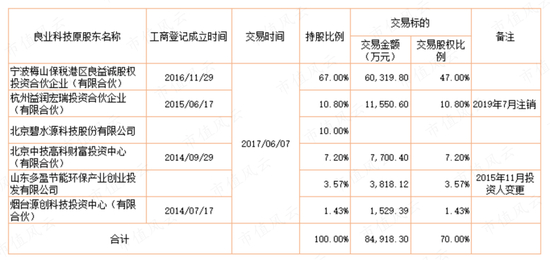 2018年12月,上市公司再次以现金3.85亿元收购宁波良益诚持有的目标公司10.01%;此时,良业环境100%股权对应的估值飙升至38.5亿元,较1年半前增长了260%。交易完成后,碧水源持有良业环境90.01%股权。