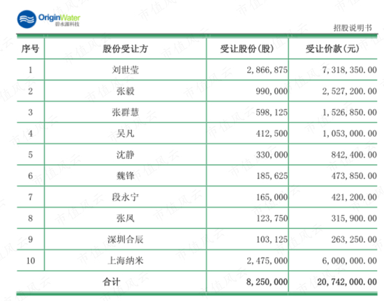 才守了2年整的云南国信,最终在2008年8月以2074万元的价格转让了碧水源的7.5%股权,受让方为刘世莹、张毅、张群慧、吴凡、沈静、魏锋、段永宁、张凤和深圳合辰、上海纳米等8名(家)。