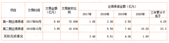 估值大幅增长,业绩承诺也跟着水涨船高,宁波良益诚承诺良业环境在2018年至2020年的扣非净利润分别不低于5.5亿元、7.6亿元、10.2亿元,三年累计不低于23.3亿元。