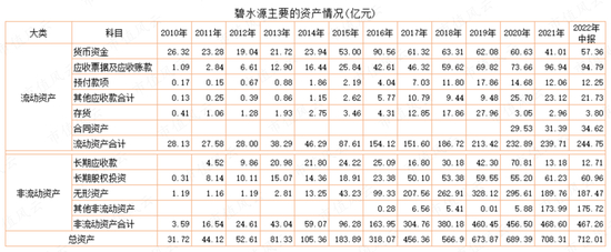 话说,碧水源上市后可谓如鱼得水,营收、总资产不断增长。2010年流动资产、非流动资产分别仅为28亿元、3.6亿元,到2022年上半年二者分别达244.8亿元、467亿元,分别增长了8倍、129倍。