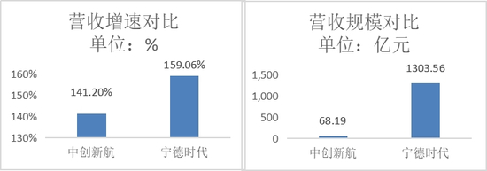 从营收规模来看,虽然中创新航2021年实现了141.20%的营收增速,但总体规模68.19亿元,仅为宁德时代营收的5.23%。