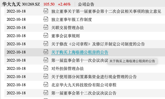 华大九天这则“关于购买上海临港公租房的公告”是在10月18日发布的,夹杂在二十余条常规公告中间。