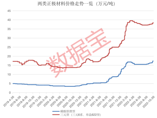 由于上游原材料涨价,下游新能源车销量向好,导致正极材料处于供给紧平衡的状态,带动价格上涨。三元6系(单晶622型)正极材料在今年5月一度接近40万元/吨,磷酸铁锂型正极材料则达到17万元/吨的高位。