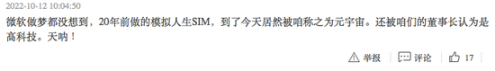 当然,受制于技术水平,元宇宙目前在远程会议、3D设计方面的应用更为成熟,在游戏、日常生活领域的体验,离“元宇宙”可能还有着N个“QQ秀”的距离。就像中青宝90后董事长的“元宇宙婚礼”,让2000年出版的《模拟人生》玩家觉得眼熟。
