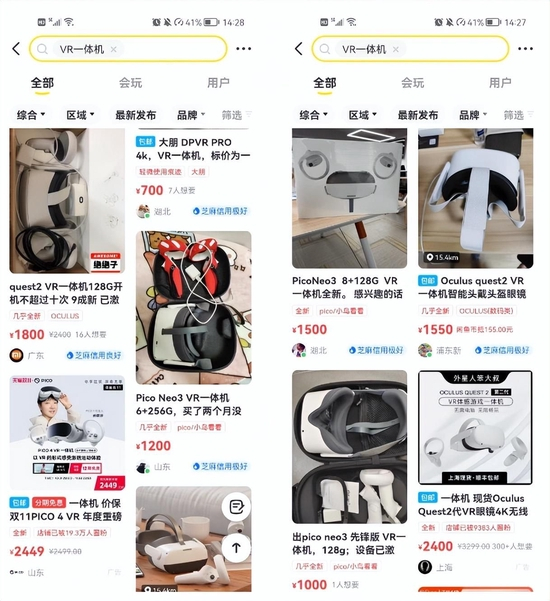 (VR一体机转卖情况 图源:闲鱼)
