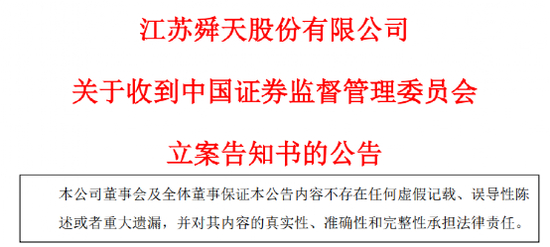 11月5日江苏舜天公告,于2022年11月4日收到中国证监会下发的《立案告知书》,因公司涉嫌信息披露违法违规,根据《中华人民共和国证券法》《中华人民共和国行政处罚法》等法律法规,中国证券监督管理委员会决定对公司立案。