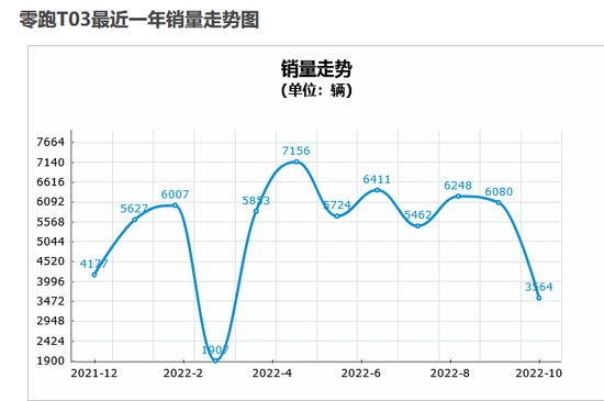 公开数据显示,2022年1月-10月,零跑T03累计销量为54412辆,占公司同期总销量比重超过57%,占据一半以上。