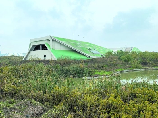 近日,记者专程前往镇江大白鲸项目进行调查。在项目工地上,记者看到,早已落成的主体建筑如今满是斑驳。已经上墙的部分装饰材料,如今七零八落。项目人去楼空,部分材料和设备露天堆砌在园区里,显示出日晒雨淋的痕迹,地面平整更是无从谈起,到处黄土裸露,一人多高的荒草成为园区中勉为其难的些许绿意。