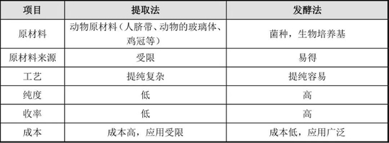 最初透明质酸的制备主要从鸡冠和人脐带中提取,原料少、成本高、产量低。上世纪80年代,日本首次报道使用链球菌发酵法生产透明质酸。20世纪末,链球菌发酵法成为透明质酸生产的主流方法。但此时透明质酸仍然主要用于骨科、眼科等医疗场景。