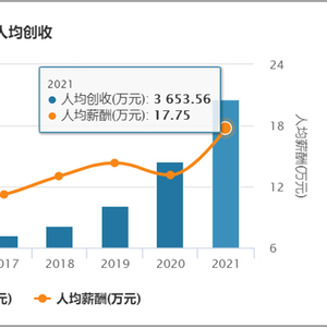 Wind数据显示,国联股份人均创收由2016年的137.58万元大幅上涨至2021年的3653.56万元。