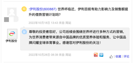 由于老对手蒙牛已经成为世界杯官方赞助商,伊利只能退而求其次,把筹码分散。