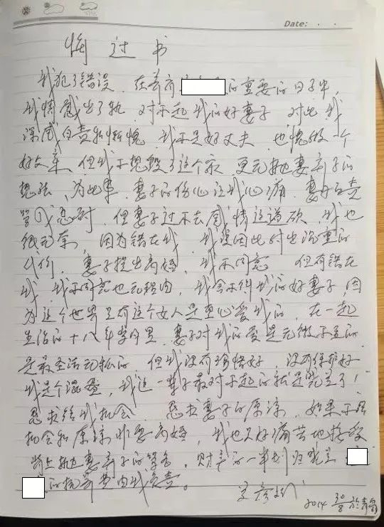 2014年,得知关彦斌和女秘书事情的张晓兰提出离婚,关彦斌不同意,并写下悔过书: