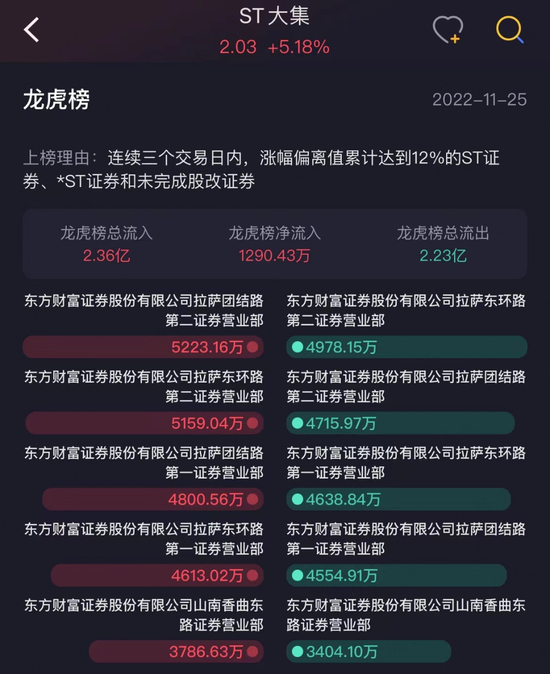 但风云君发现,这次最吃这一套的竟然是广大的韭菜们:2022年11月以来,ST大集曾四次登上龙虎榜,上榜营业部几乎清一色的“散户大本营”。
