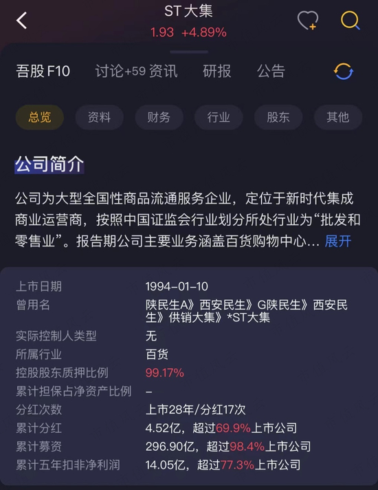 换个角度来看,从1994年上市至今,ST大集已经在A股累计募集了297亿元,累计现金分红却不足5亿。