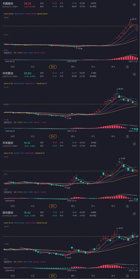 11月初至今,多地公告称要恢复重建农村供销社。不出意外,与供销社概念相关的股票集体掀起涨停潮,比如天鹅股份(603029.SH)、中农联合(003042.SZ)等等。