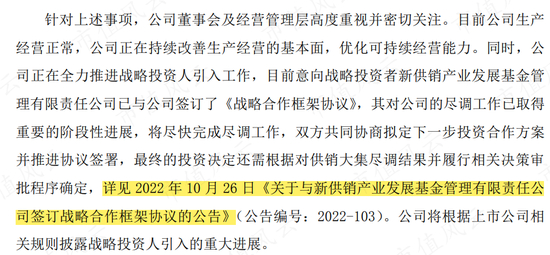 其实这里面也不全是运气,毕竟上市公司总是时不时就提一下自己在2022年10月26日,与新供销产业发展基金签订的战略合作框架协议。
