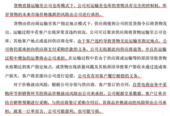 作为存货,国联股份有两种模式:自有仓发货和供应商运输,均要承担存货价格涨跌风险,如果客户违约,也要承担预付账款的风险。
