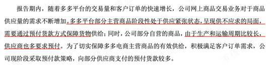 但由于国联股份不从事生产环节,这种上游集采、下游分销的模式,需要预付给供应商进行锁单生产,保障货物供给。