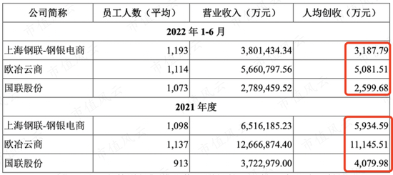 目前国联股份人均收入是低于欧冶云商和上海钢联旗下的钢银电商。