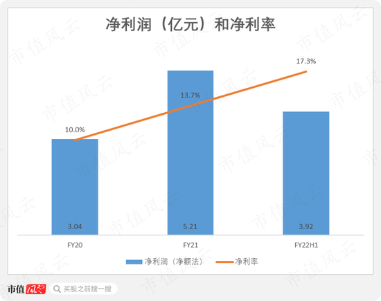 净利润和净利率同样呈现增长态势。2022年上半年净利润达到3.9亿元,同比大增64%,净利率也创下近年新高17.3%。